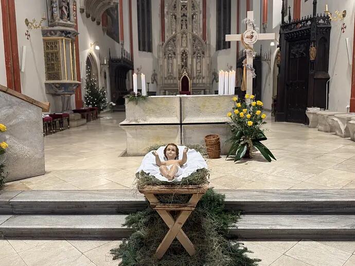 Betlémská událost je ztvárněná stavbou „jesliček“. Je to tradice, která má sloužit k rozjímání a pochází od sv. Františka z roku 1223.