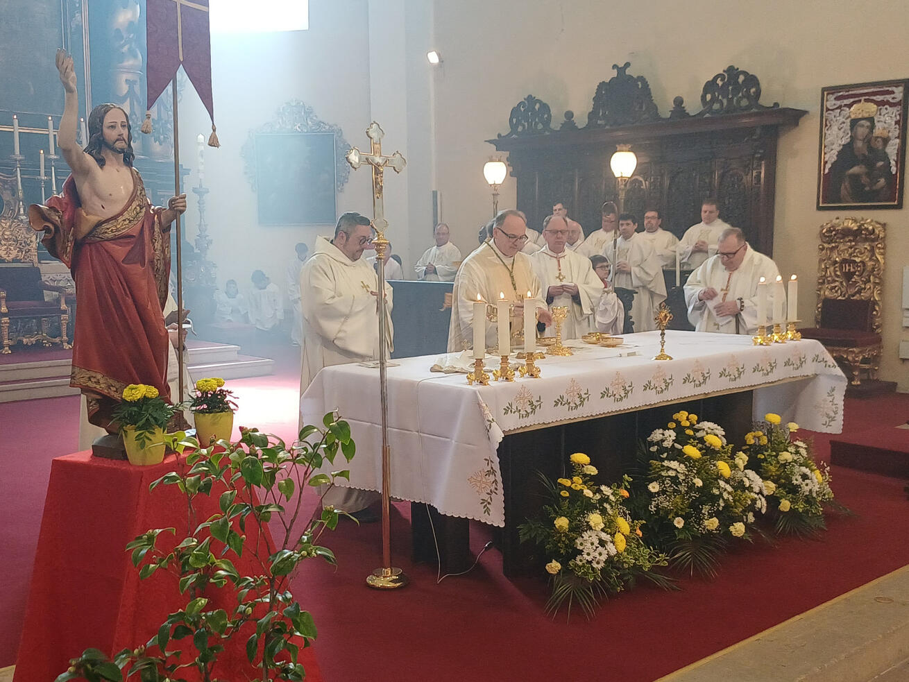 Na mši svatou navázala oslava na biskupství, kam Stanislav Přibyl pozval celé shromáždění na pohoštění a sklenku vína a také piva z Biskupského pivovaru U svatého Štěpána.