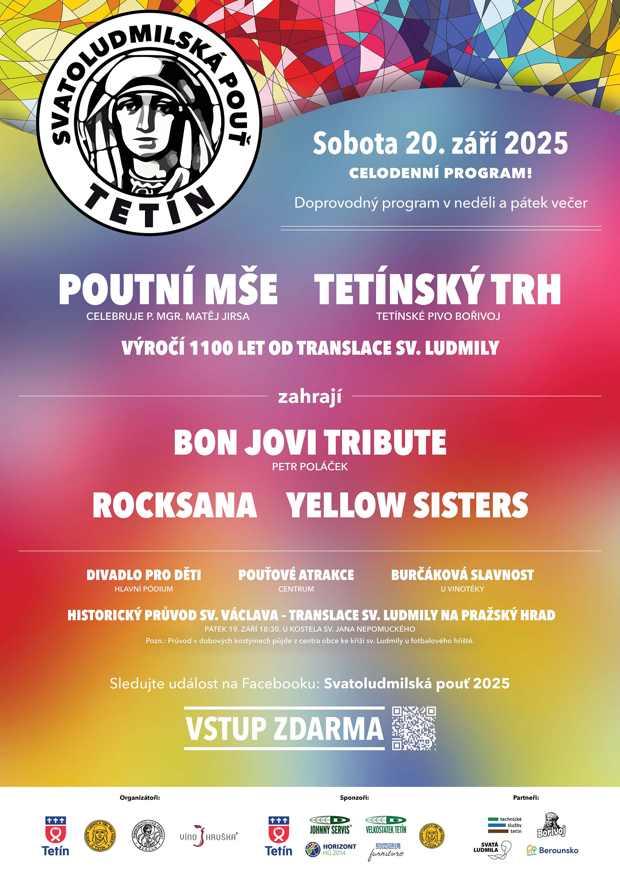 V sobotu 20. září pak oslavy pokračují dopolední mší (11.00) a otevřením konce nové Stezky sv. Ludmily. Zájemci si mohou prohlédnout také tetínskou relikvii sv. Ludmily. Chybět nebude ani koncert, pouťové atrakce a divadlo pro děti, ani další bohatý doprovodný program, který bude pokračovat i během celého dne v neděli 21. září (přiložen podrobný leták).