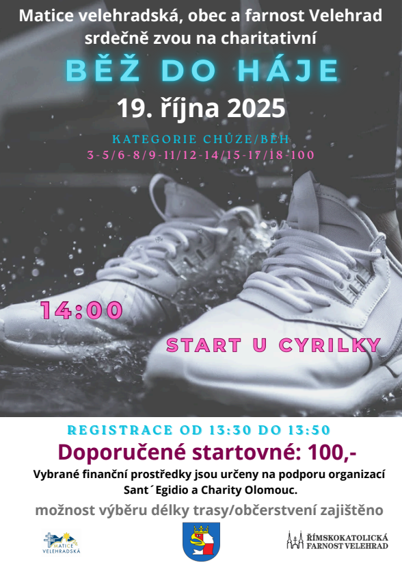 Doporučené startovné je 100 Kč na osobu. Akci pořádá farnost Velehrad, Matice velehradská a obec Velehrad.