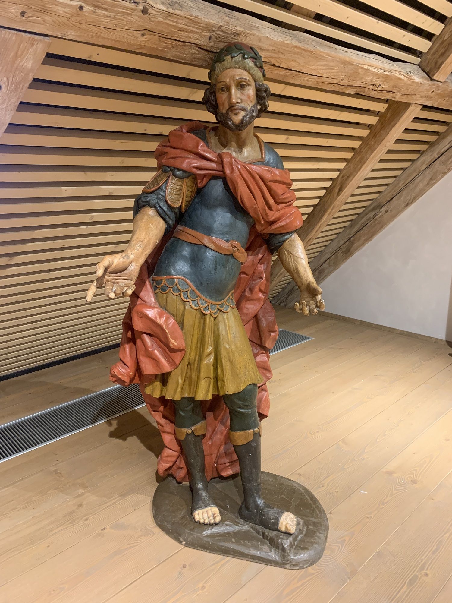 Dřevořezba Piláta Pontského vznikla podle staršího určení roku 1680, novější výzkumy ji však kladou spíše do první poloviny 18. století. Autorem je dosud neznámý řezbář. Socha vysoká 180 centimetrů zobrazuje římského místodržitele v brnění, s vavřínovým věncem na hlavě a výrazným červeným pláštěm splývajícím až k podstavci. V kapli je umístěna tak, že gesto pravé ruky směřuje k postavě Ježíše Krista a zdůrazňuje dramatický okamžik pašijového příběhu.