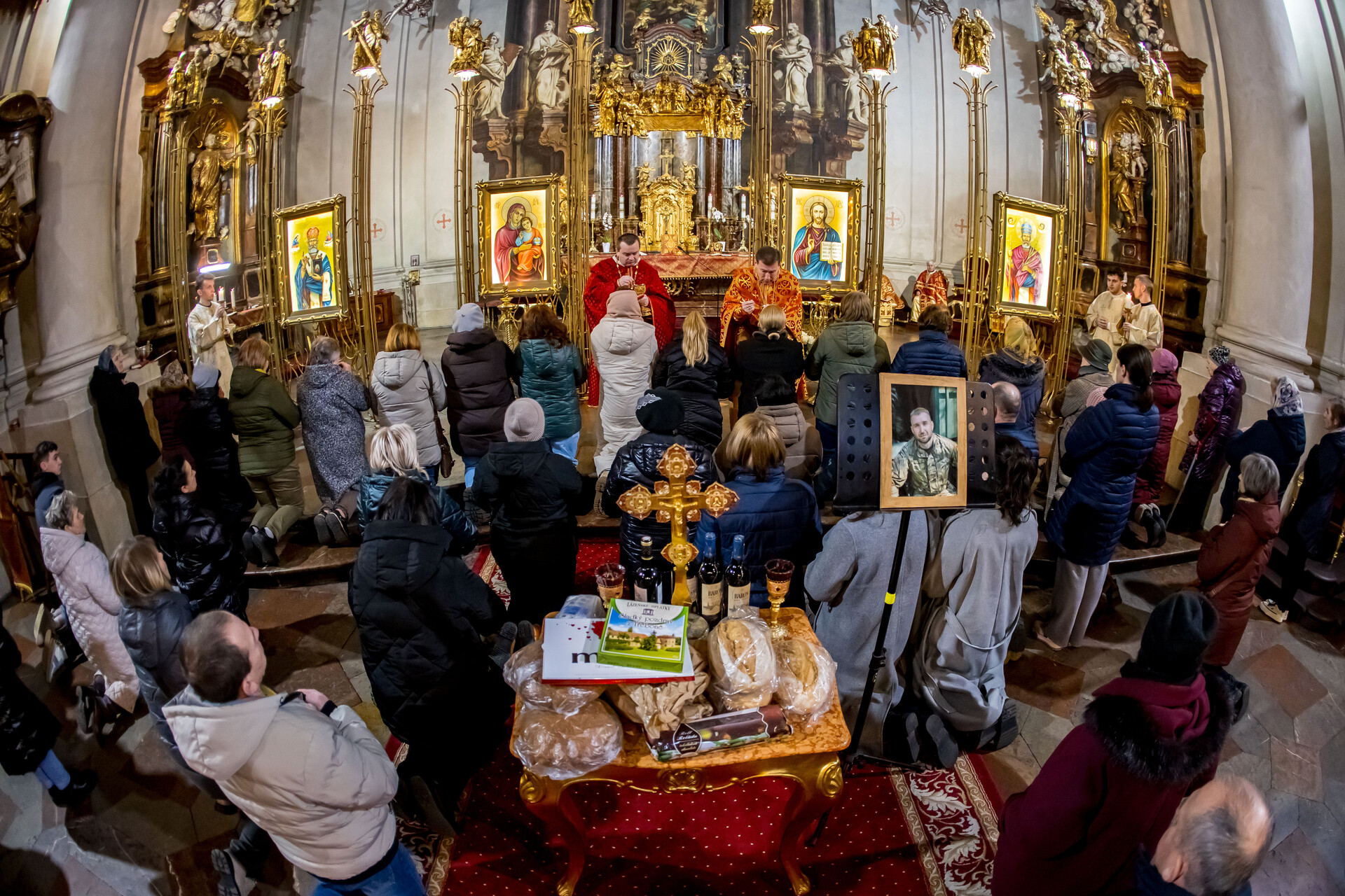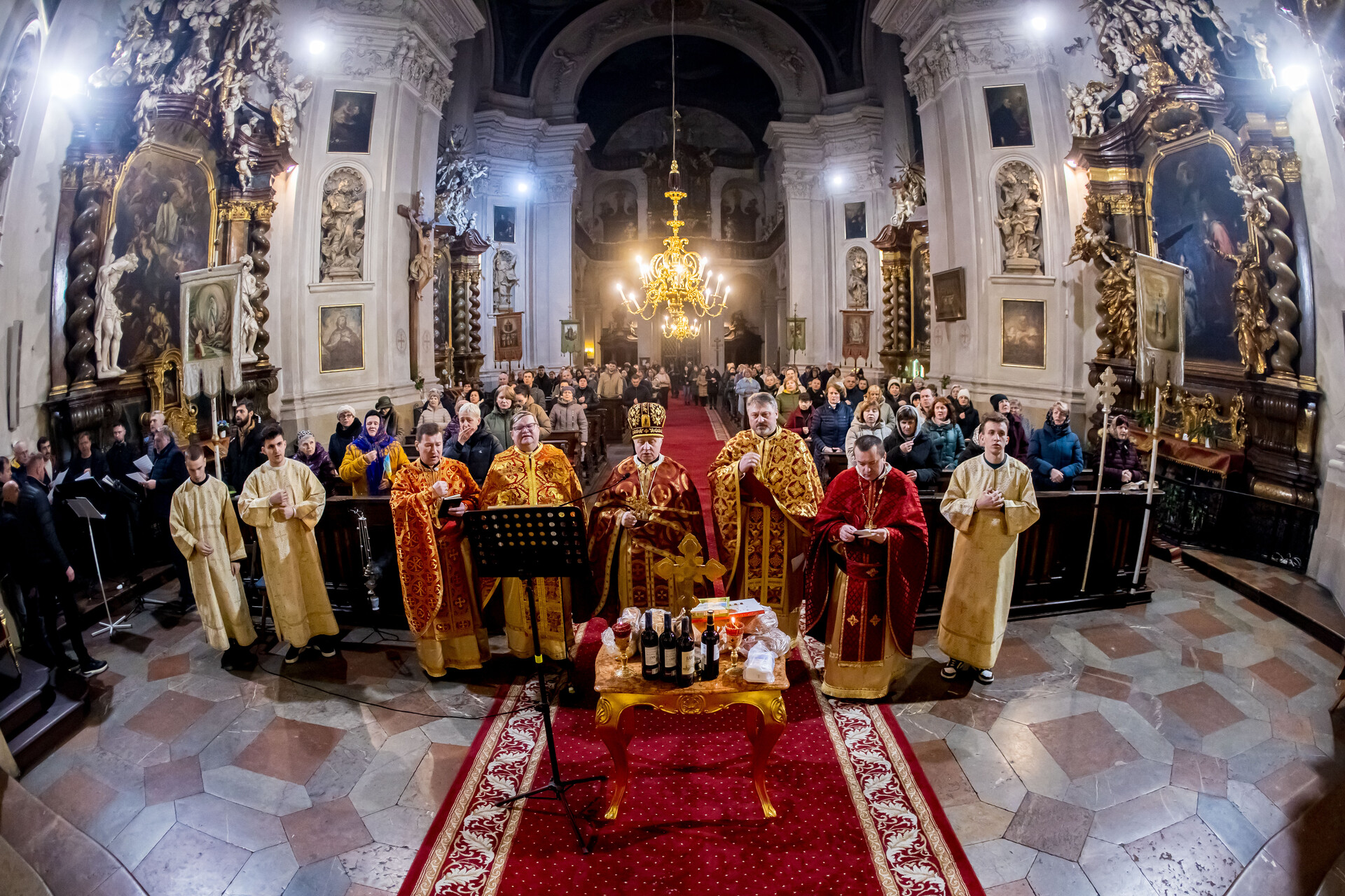 V řeckokatolické katedrále sv. Klimenta se konala svatá liturgie u příležitosti 4. výročí začátku války na Ukrajině. Sloužil ji administrátor Apoštolského exarchátu řeckokatolické církve v ČR o. Vasyl Slivocký s dalšími duchovními. V závěru bohoslužby se všichni pomodlili modlitbu za zemřelé, tzv. panachydu, a to jak u sv. Klimenta, tak poté i v sousedním kostele sv. Salvátora.