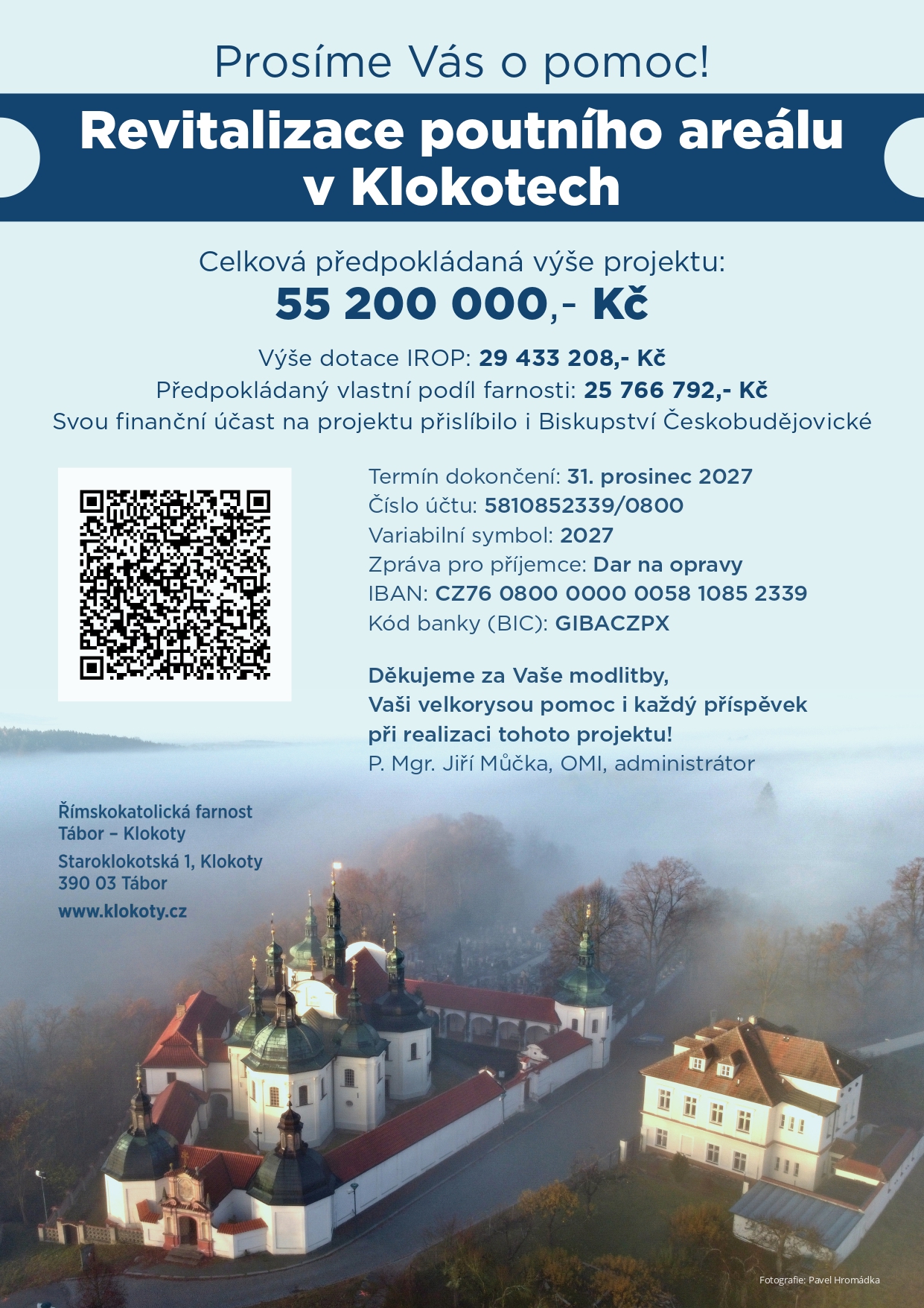 Pán Bůh zaplať za Vaše modlitby, Vaši velkorysou pomoc i každý příspěvek při realizaci tohoto projektu! Za každé sdílení naší prosby o podporu budeme vděční – stáhněte si plakátek zde.