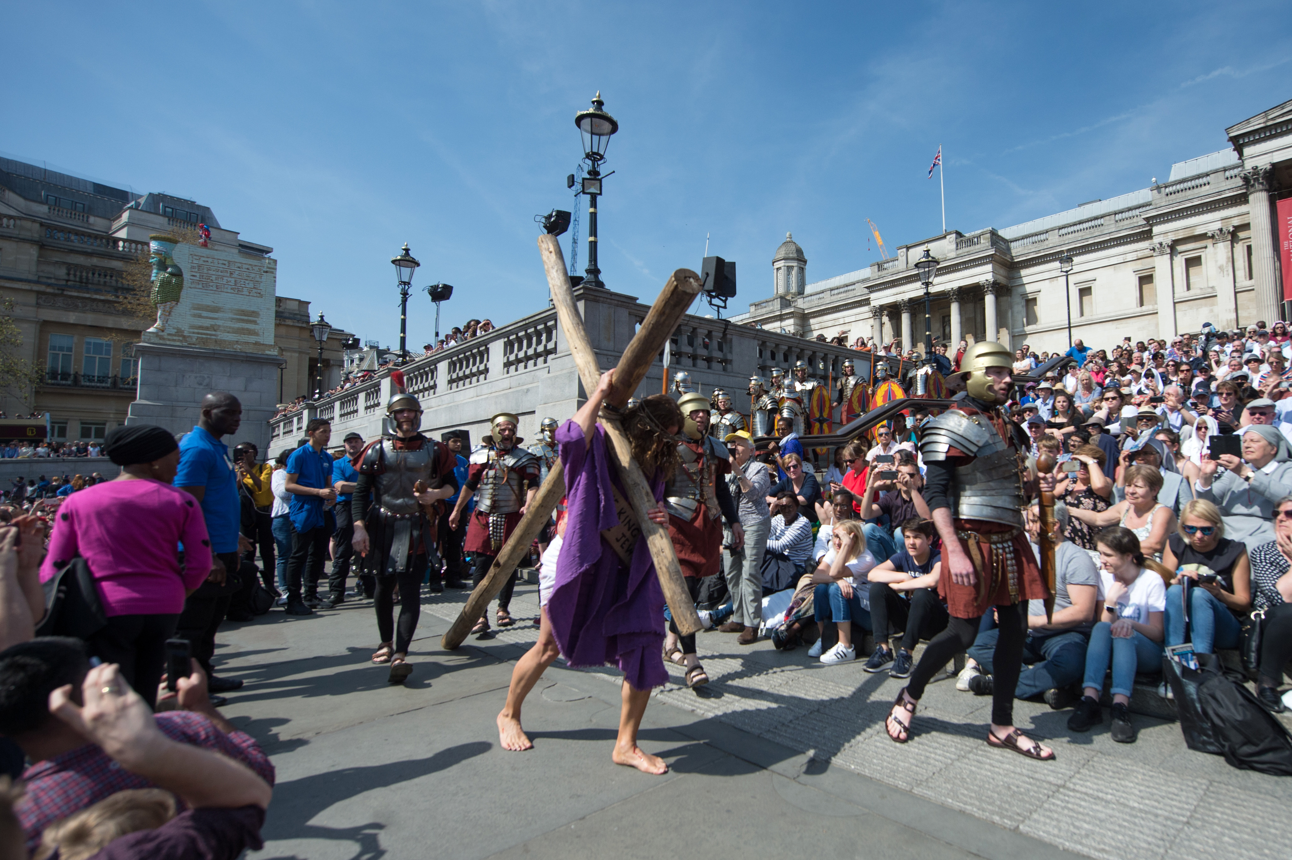 Na londýnském Trafalgarském náměstí se 3. dubna již pošestnácté uskuteční velkolepé pašijové představení pod širým nebem. Inscenaci „Ježíšovo utrpení“ uvede dvakrát soubor Wintershall Theatre, který se specializuje na ztvárnění biblických příběhů.