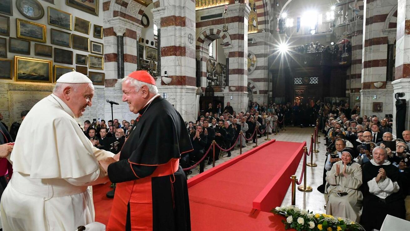 První páteční setkání papeže Františka v Marseille se uskutečnilo s diecézním klérem v bazilice Notre-Dame-de-la-Garde v Marseille. Ve své promluvě během mariánské modlitby Svatý otec připomněl, že kostel, v němž se setkání koná, nevznikl jako výsledek zázraku nebo zjevení, ale proto, že Boží lid v Marseille zde hledal a našel přítomnost Pána skrze oči jeho svaté Matky.