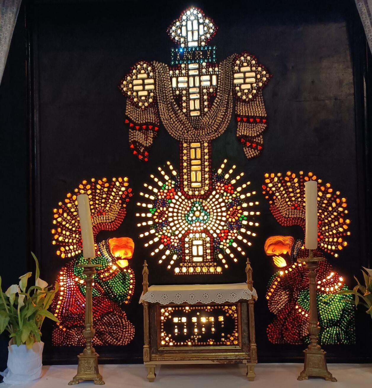 Stavba skládacího oltáře byla celkem jednoduchá, jednotlivé díly se k sobě připoutávaly háčky. Bylo rovněž doporučeno, aby se zbývající prostor kolem oltáře zakryl černou látkou, což umocňovalo jeho účinek.