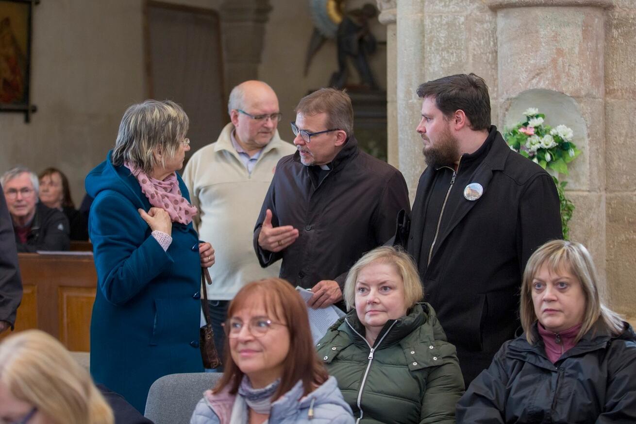 Po posvěcení oltáře biskupem Tomášem a vystoupení Aleše Noska (varhany) a jeho ženy Blanky (zpěv) následoval čas pro setkání a rozhovory se všemi, kteří se na obnově oltáře podíleli. Za jejich úsilí jim patří upřímné poděkování.