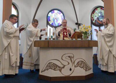 „Scházíme se zde, abychom si společně připomněli postavu svatého Josefa, muže spravedlivého, který doprovázel Pannu Marii v jejích nejtěžších zkouškách, jak o tom budeme číst v dnešním evangeliu, ale i proto, abychom vyprošovali zdejším sestrám hojnost Božího požehnání a síly v jejich pastorační službě, kterou zde konají, a abychom vyprošovali svým drahým potřebné milosti k naplnění poslání, které jim Bůh dal. Položme zároveň na oltář i všechny svoje kříže a svá očekávání,“ řekl v úvodu mše svaté biskup Kročil.