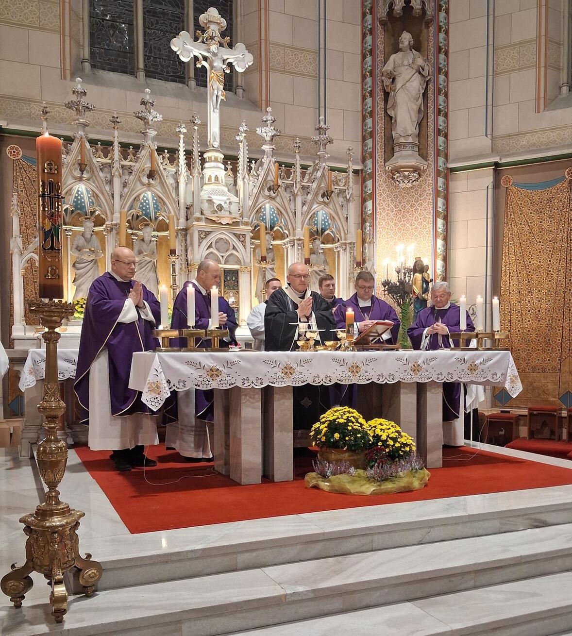 Zádušní mši za zesnulého kardinála Dominika Duku OP celebroval v olomoucké katedrále arcibiskup Josef Nuzík, předseda ČBK, spolu s pomocným biskupem Antonínem Baslerem, generálním vikářem Ladislavem Švirákem a téměř třemi desítkami kněží.