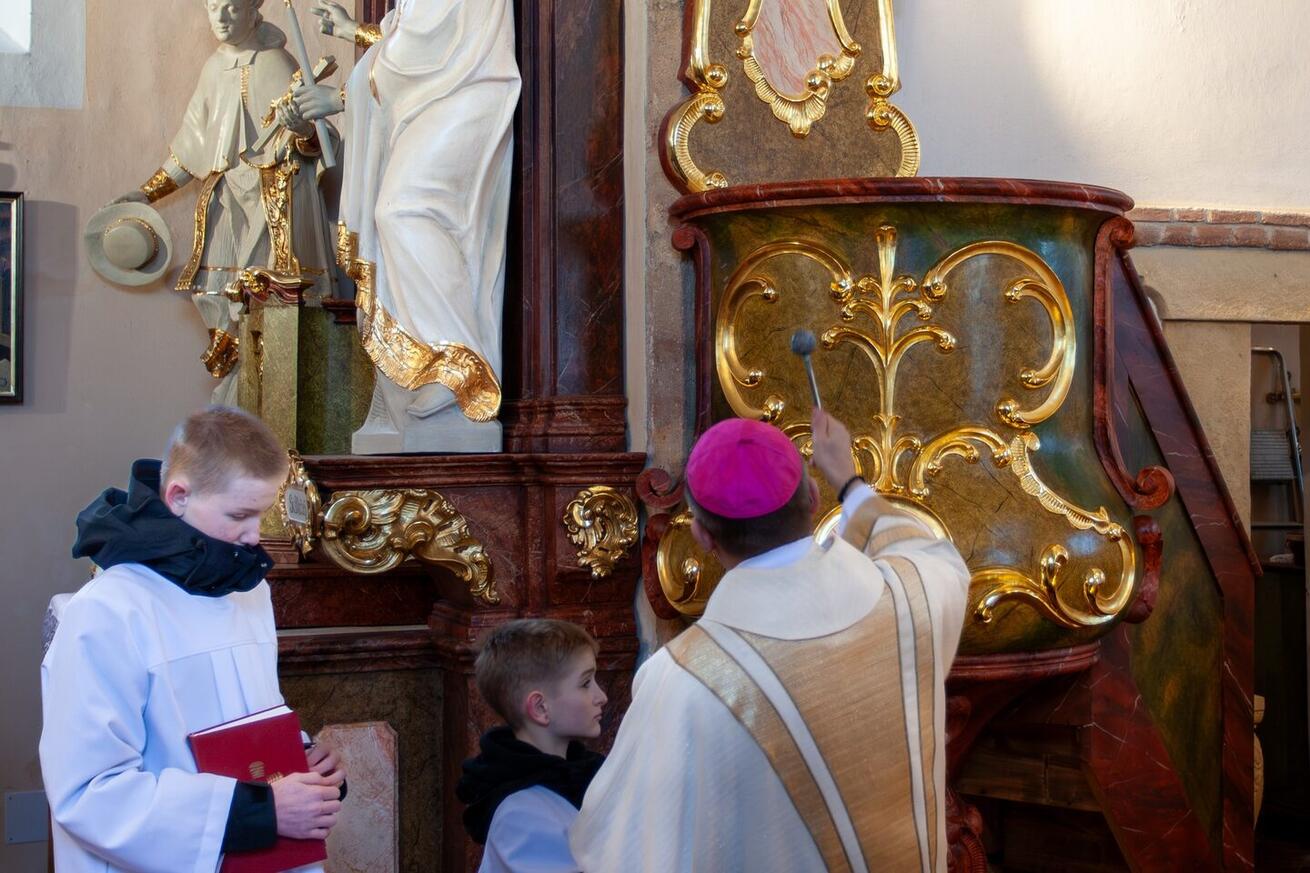 V neděli 11. ledna požehnal biskup Tomáš novou kazatelnu v kostele sv. Prokopa v Letinech.